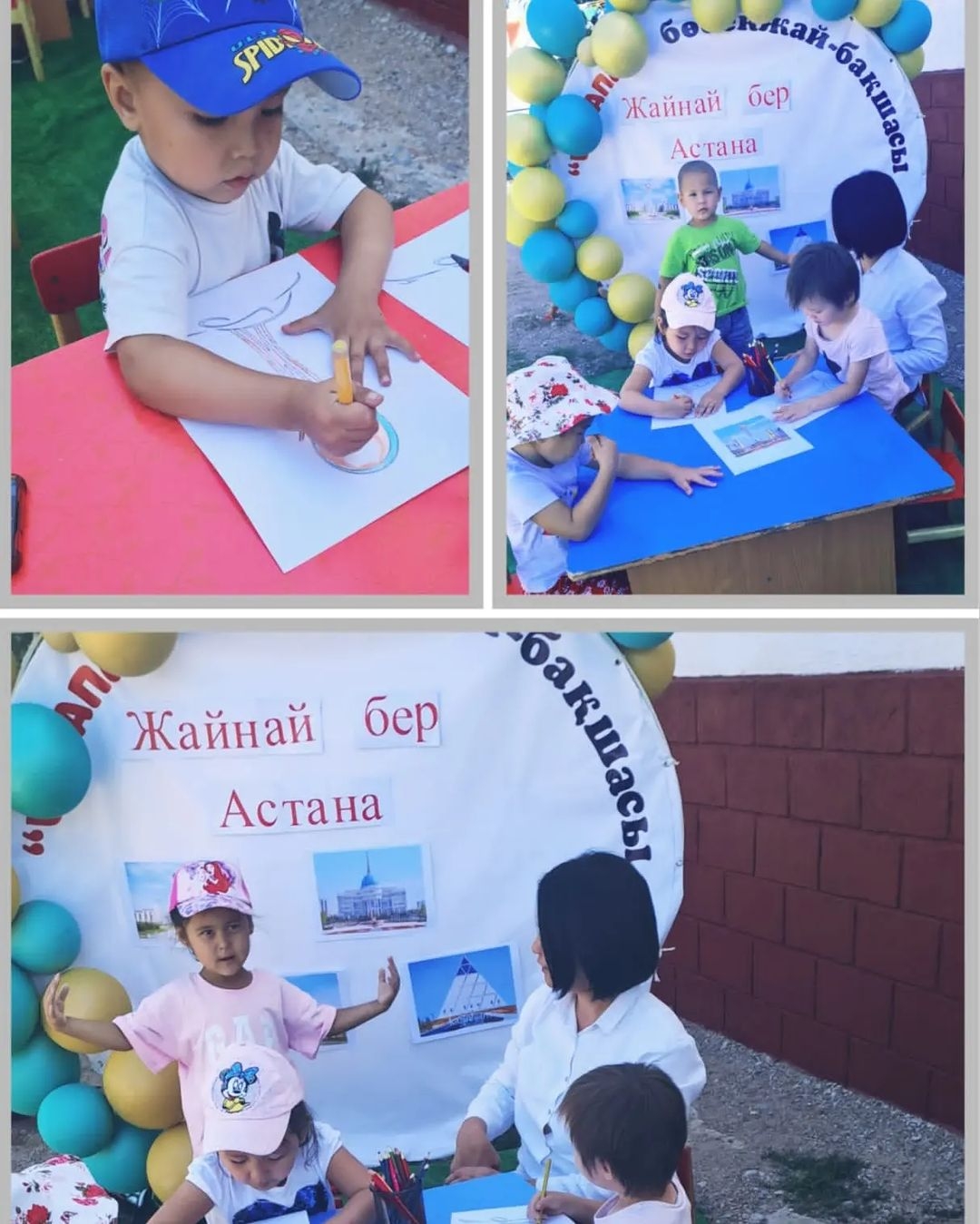 "Балапан" бөбекжай-бақшасының жазғы маусымдық жоспарына сай 10.07.2023 жылы "Жайнай бер Астана" атты тақырыпта, бас қаламыз Астана бүлшіндерімізге таныстырылды. Ой-өрісін дамыту, елін, жерін сүюге тәрбиелеу мақсатында тәрбие сағаты таза ауада өткізілді.