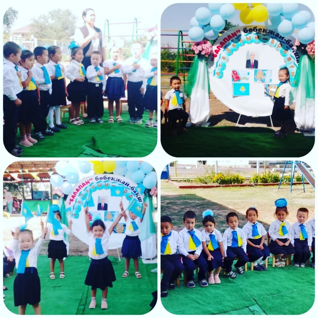 "Балапан"бөбекжай-бақшасында 30-тамыз Конститутция күніне орай"Ата заңым-ардағым" атты тақырыпта "Қарлығаш", "Бүлдіршін" топтарында таза ауада тәрбие сағаты балалардың Отанға деген сүйіспеншілігін арттыру,еліміздің ата-заңын,рәміздерін құрметтеуге тәрбиелеу мақсатында ұйымдастырылып өткізілді.