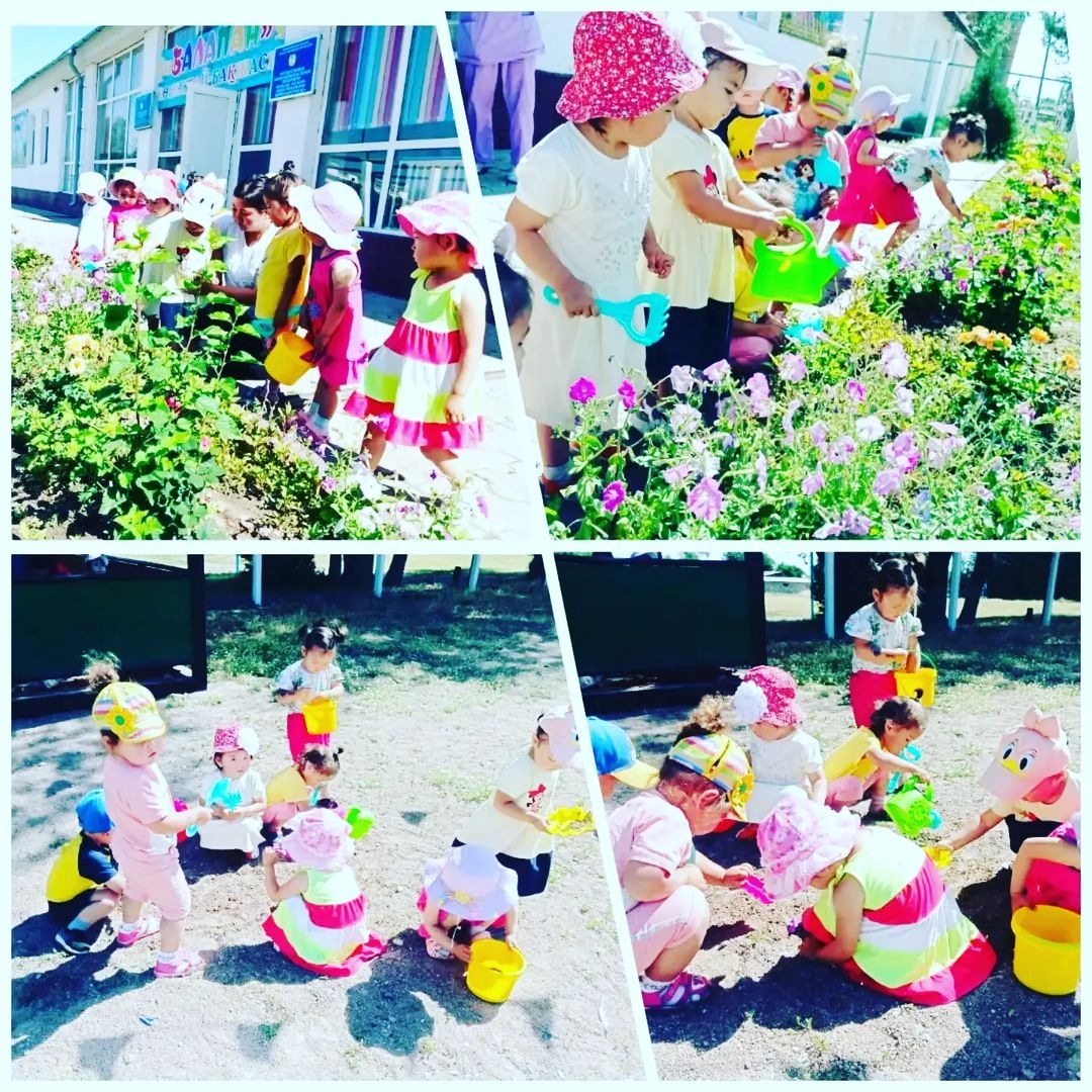 "Балапан" бөбекжай - бақшасында жаздық жоспарға сай "Гүлдер әлеміне саяхат "атты тақырыпта, ұйымдастырылған іс-әрекетті таза ауада бүлдіршіндер ауладағы гүлдердің түбін босатып, су құйып күтім жасады. "Қарлығаш" тобы таза ауада ертегі кітаптарын тамашалады.