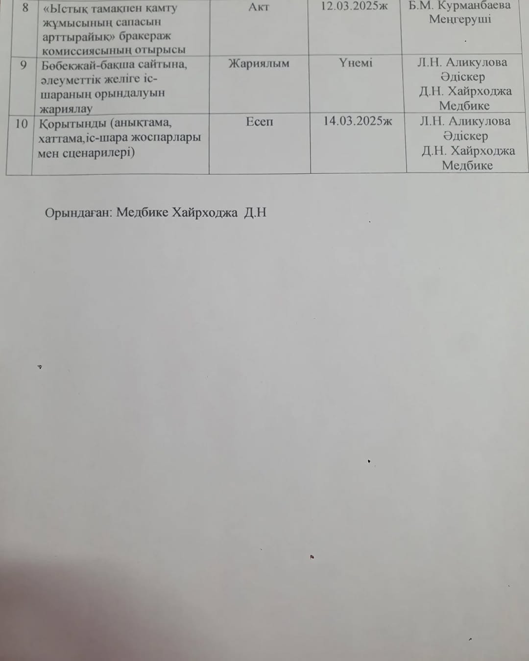 “Балапан” бөбекжай-бақшасының кіші қызметкерлерімен және “Қарлығаш” ересек тобының тәрбиеленуші қыздарымен тазалық жұмыстары жүргізілді.