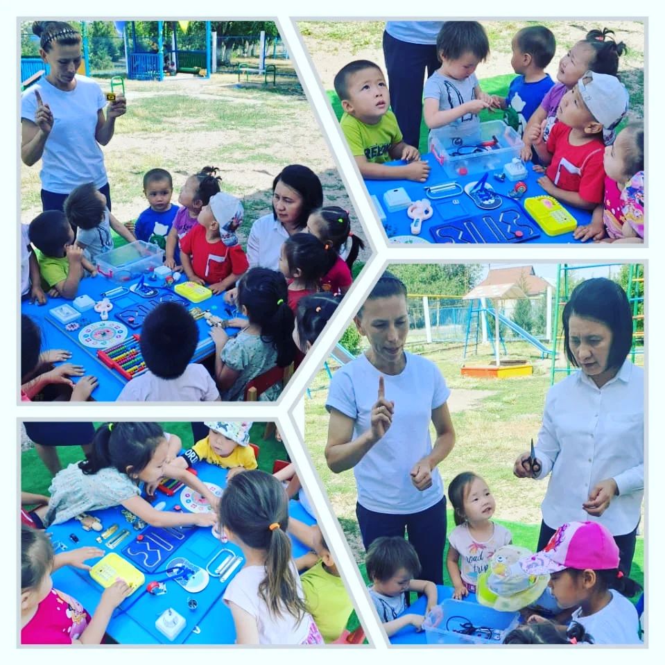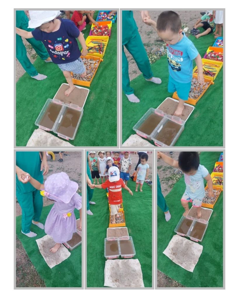 «Балапан» бөбекжай-бақшасының жоспарына сай»Құм, тас, су»атты тақырыпта бүлдіршіндер таза ауада тас, су, құм, таяқша, массаж нүктелер түрлерімен, табанның сезім клеткаларын ояту арқылы, қызықты ойындар ойнатылды.