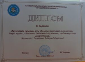 Қазақстан Республикасының Тәуелсіздігінің 30 жылдығына орай "30- жыл 30-жетістік!" атты бейнежурнал байқауында "Балапан"бөбекжай-бақшасы ІІІ-дәрежелі дипломмен марапатталды.