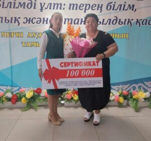 "Балапан" бөбекжай-бақшасының тәрбиешісі Т.Е. Абдиева ауданның мәдениет үйінде өткен "Білімді ұлт терең білім, еңбекқорлық және отаншылдық қасиет" тақырыбында дәстүрге айналған білім қызметкерлерінің " Тамыз" кеңесінде 2021-2022 жыл қорытындысы бойынша тәрбиелеу ісіне қосқан үлесі мен педагог мәртебесін арттырудағы шығармашылық ізденісі үшін ақшалай сертификат ұсынылды.