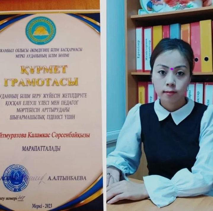 Ауданның білім беру жүйесін жетілдіруге қосқан елеулі үлесі мен педагог мәртебесін арттырудағы шығармашылық ізденісі үшін ұстаздар мерекесіне орай аудандық білім бөлімінің басшысы Алтынбаева Айгерім Аханқызының Құрмет грамотасымен әдіскер Сейтмуратова Қаламқас Сәрсенбайқызы марапатталды.