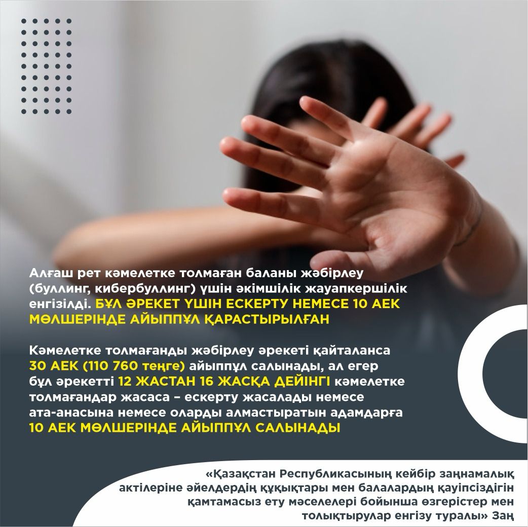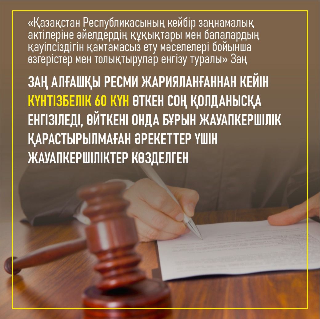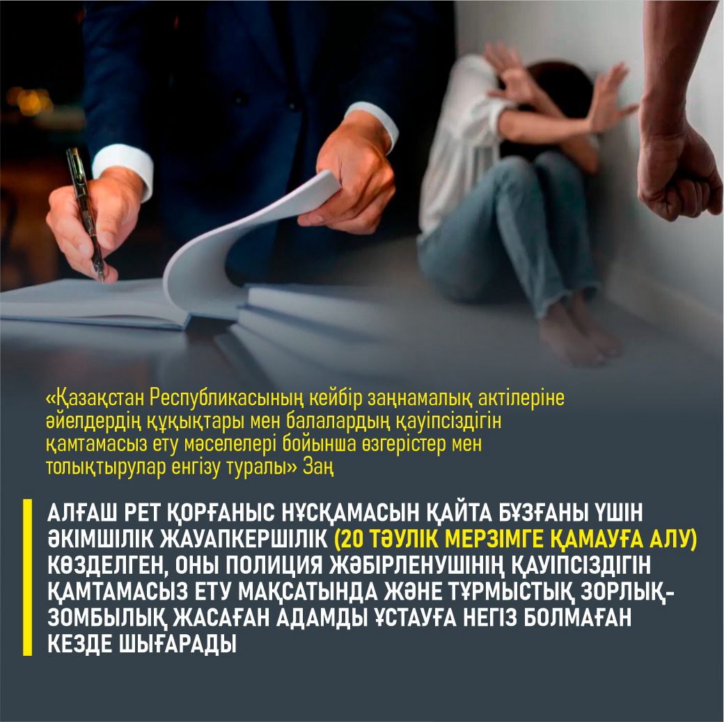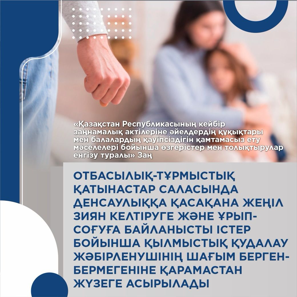 Мемлекет басшысы 2022 жылғы 16 наурыздағы және 2023 жылғы 1 қыркүйектегі Қазақстан халқына арнаған жолдауларында әйелдер мен балаларға қатысты зорлық-зомбылық үшін жазаны қатаңдатуды тапсырғанын еске сала кетейік.